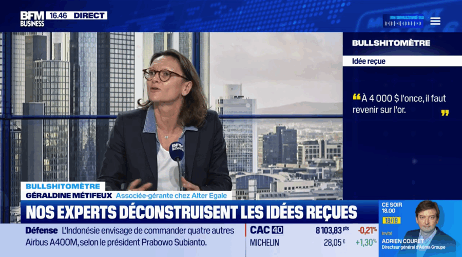 Retrouvez Géraldine Métifeux, Associée Fondatrice du cabinet de gestion de patrimoine Alter Egale, dans l’émission Bullshitomètre « A 4 000$ l’once, il faut revenir sur l’or : FAUX, répond Géraldine Métifeux ». Cliquez ici pour visionner : BullshitomètreRead More